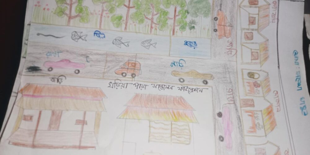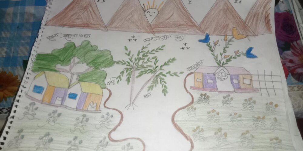 A special highlight of these sessions is the children’s artwork, through which they creatively depict their village and express their love for their surroundings. The drawings are impressive, reflecting both imagination and a deep connection to their community.